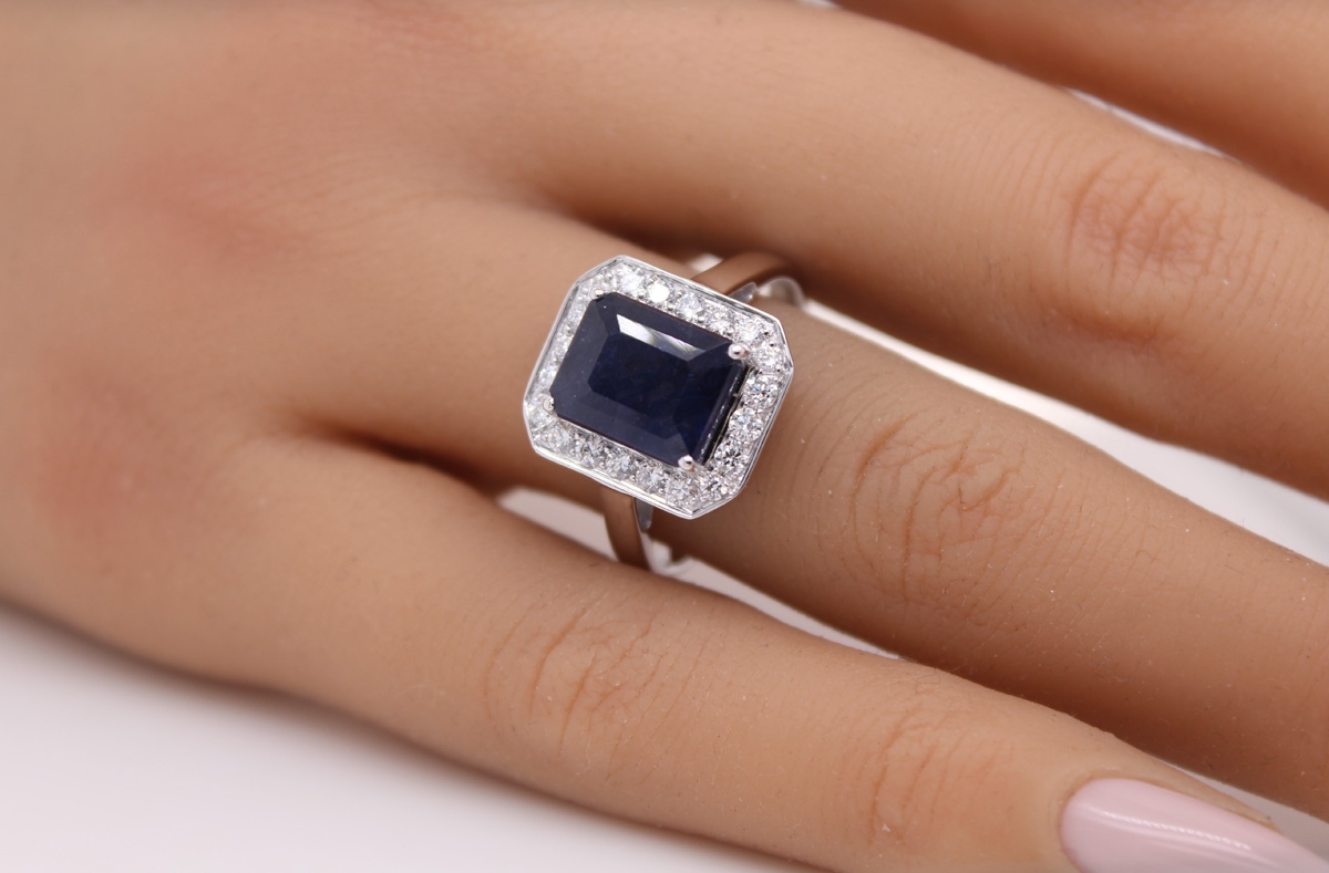 Saphir Ring Weißgold 585 14K blau echt Edelstein Lab Grown Diamanten 19