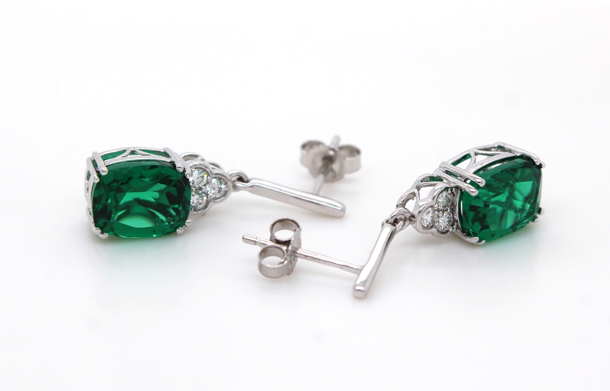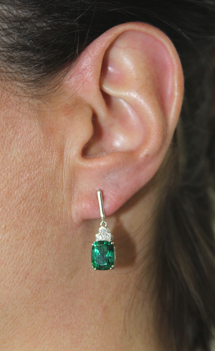 Smaragd Ohrstecker Weißgold 585 14K Labor Smaragde Lab Grown Diamanten. Klassische Ohrringe zu jedem Anlass passend. Länge 24,6mm, Breite 7,1mm, Höhe 6,2mm, Total 3,39 Gramm. Damenohrringe Damenschmuck Diamantohrringe. Ein imposanter und zeitloser Klassiker, welcher jedes Frauenherz höher schlagen lässt