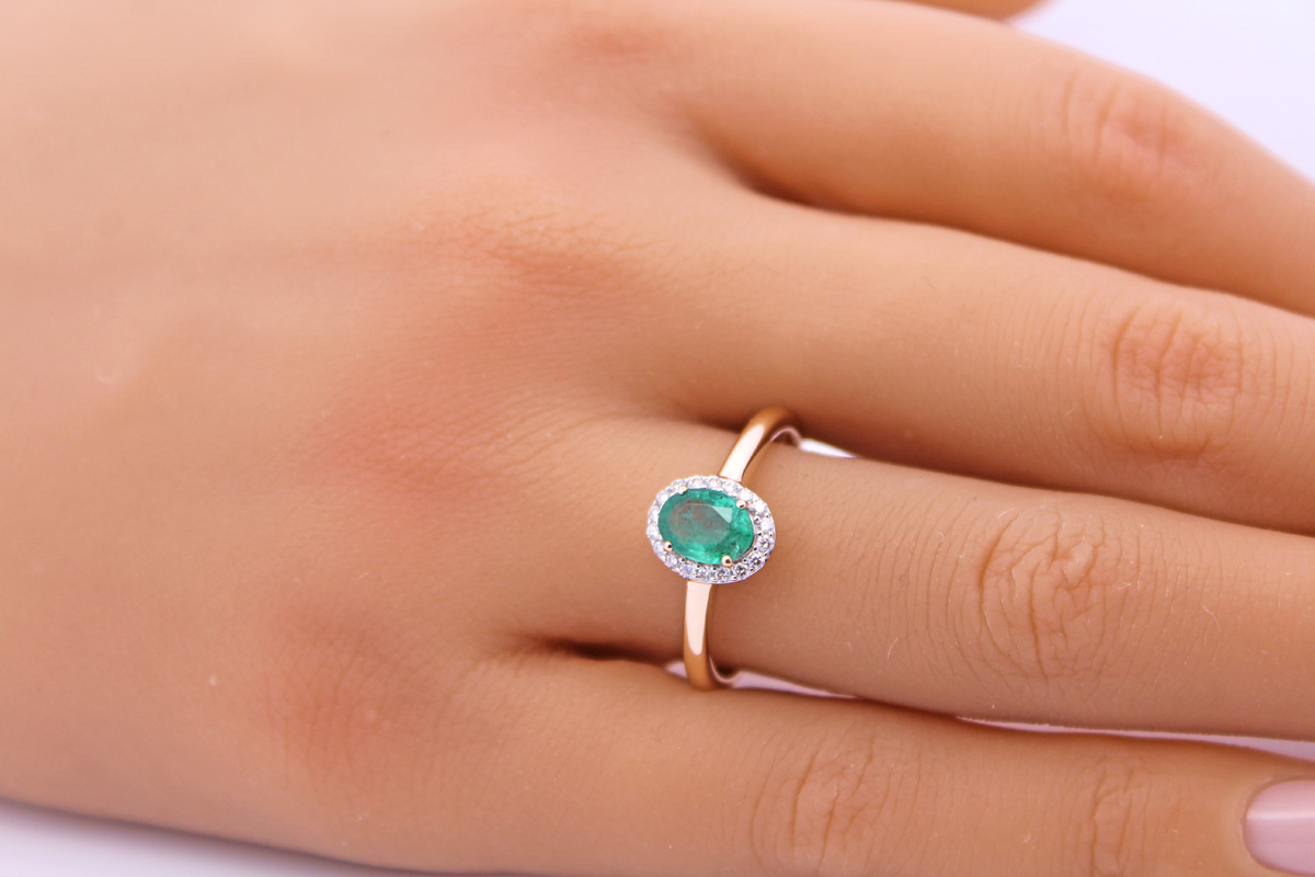 Smaragd Ring Gold 375 9K Sambia Smaragd Lab Grown Diamanten 0.15ct 19