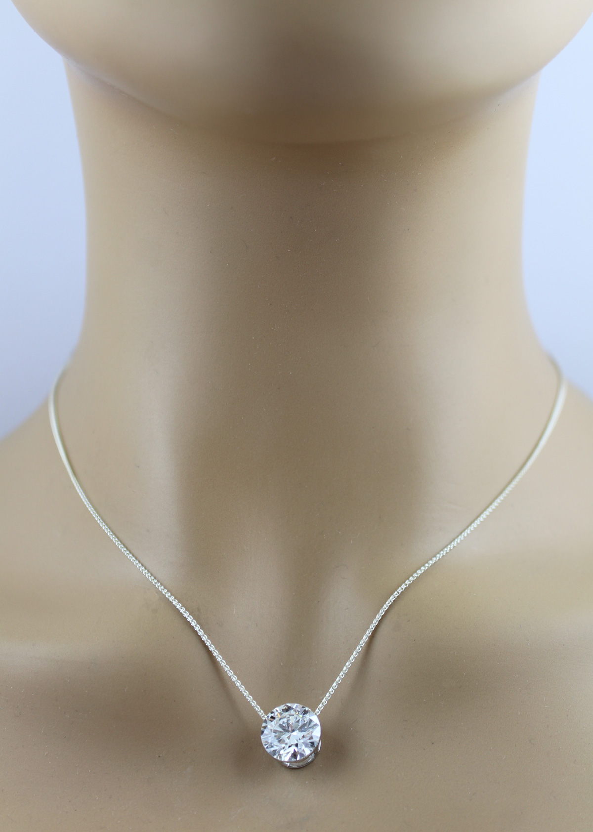Solitär Anhänger 5ct Weißgold 585 14K Lab Grown Diamant IGI Zertifikat. Der Diamant wird in einer dezenten, unsichtbaren dennoch sicheren Zargenfassung gehalten. Durchmesser 11,1mm, Höhe 8,5mm, Öse 6x3,8mm, 2,08 Gramm. Damenanhänger Goldschmuck Labor Diamanten. Tauchen Sie ein in die Welt der meisterhafter Goldschmiedekunst