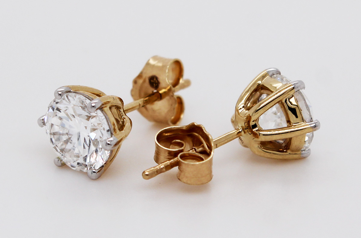 Solitär Ohrstecker 2.0ct F VSI Gelbgold 585 14K Lab Grown Diamanten
