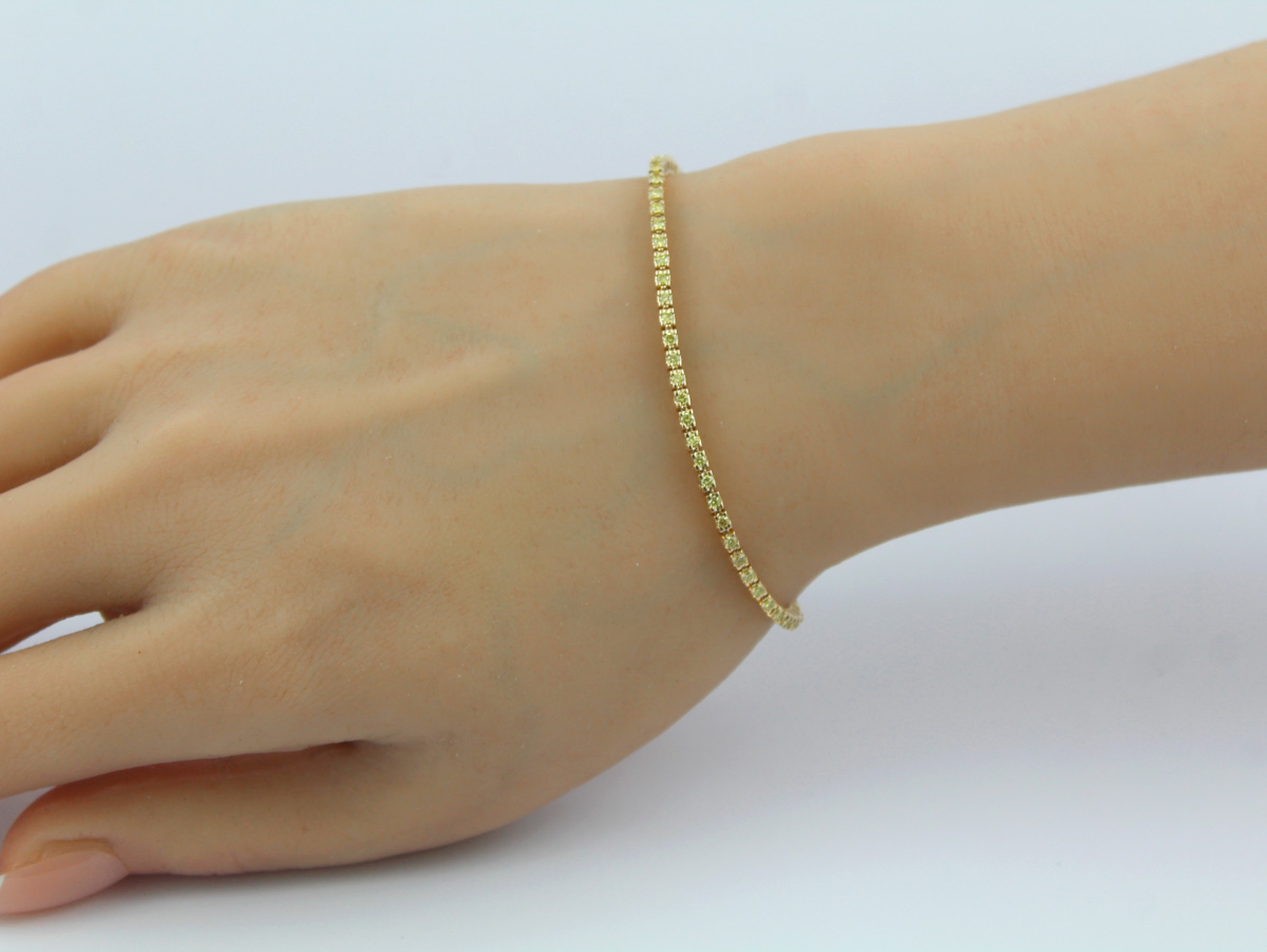 Tennis Armband Gelbgold 333 8K Diamanten 1.0ct Fancy Yellow. Sanfter und zugleich romantischer Stil für jede Frau. Breite 2mm, Höhe 2,7mm, 6,2 Gramm. Damenarmband Edelsteinarmband Damenschmuck. Ein imposanter und zeitloser Klassiker, welcher jedes Frauenherz höher schlagen lässt