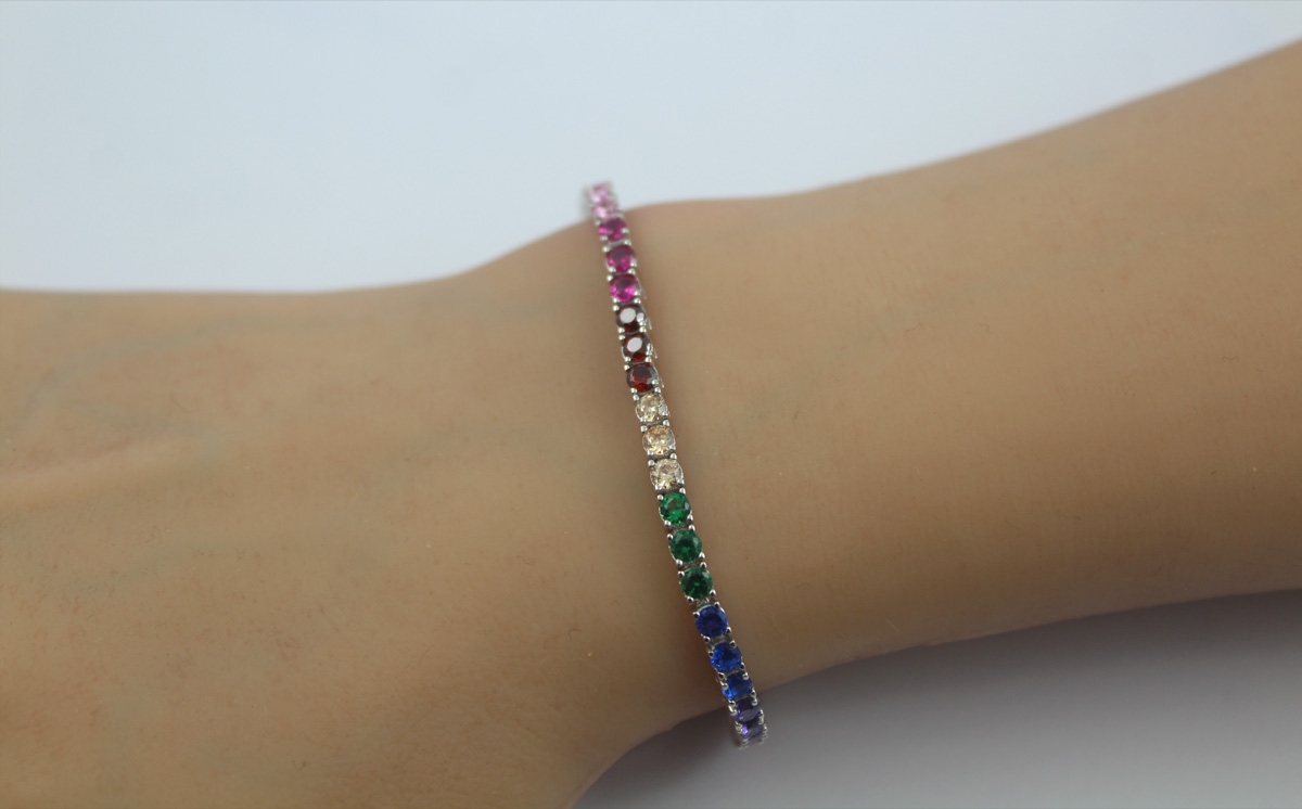 Tennis Armband Silber 925 multicolour Zirkonia Steine 18