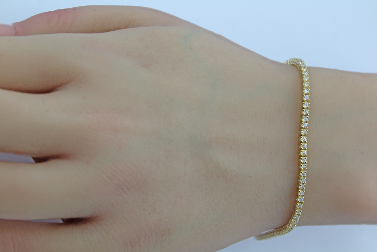 Tennisarmband Silber vergoldet Lab Grown Diamanten 1.0ct. Ein absoluter Klassiker, die Blicke werden ihnen sicher sein. Breite 2,1mm, Höhe 2,4mm, 18 und 20cm, 7,8 und 8,2 Gramm. Damenarmband Damenschmuck Labor Diamanten. Tauchen Sie ein in die Welt der meisterhafter Goldschmiedekunst
