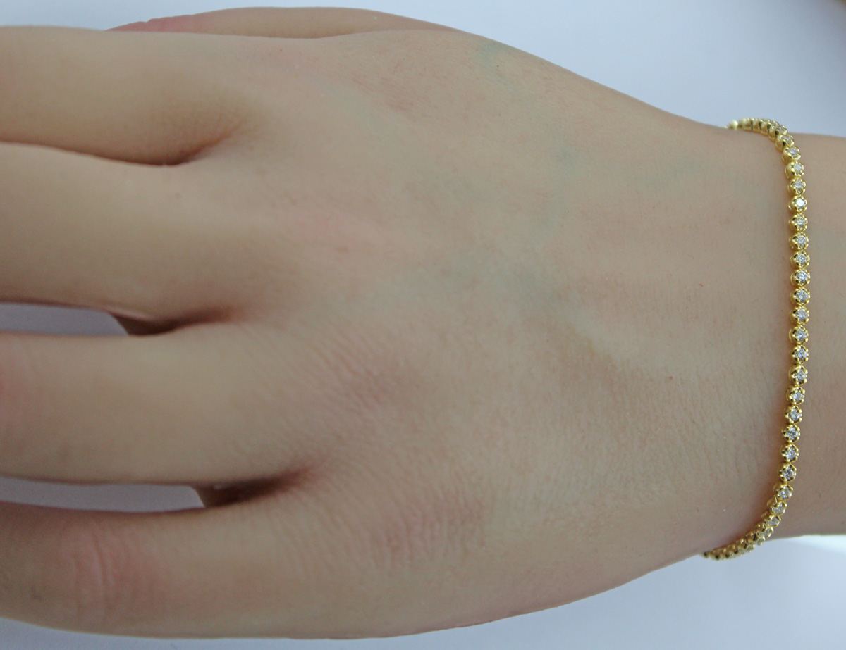 Tennisarmband Silber vergoldet Lab Grown Diamanten 1.0ct. Sanfter und zugleich romantischer Stil für jede Frau. Breite/Höhe 2,4mm, 18 und 20cm, 4,7 und 4,9 Gramm. Damenarmband Damenschmuck Labor Diamanten. Ein imposanter und zeitloser Klassiker, welcher jedes Frauenherz höher schlagen lässt