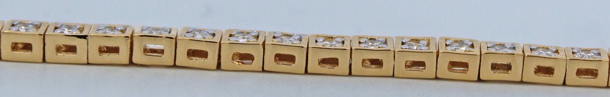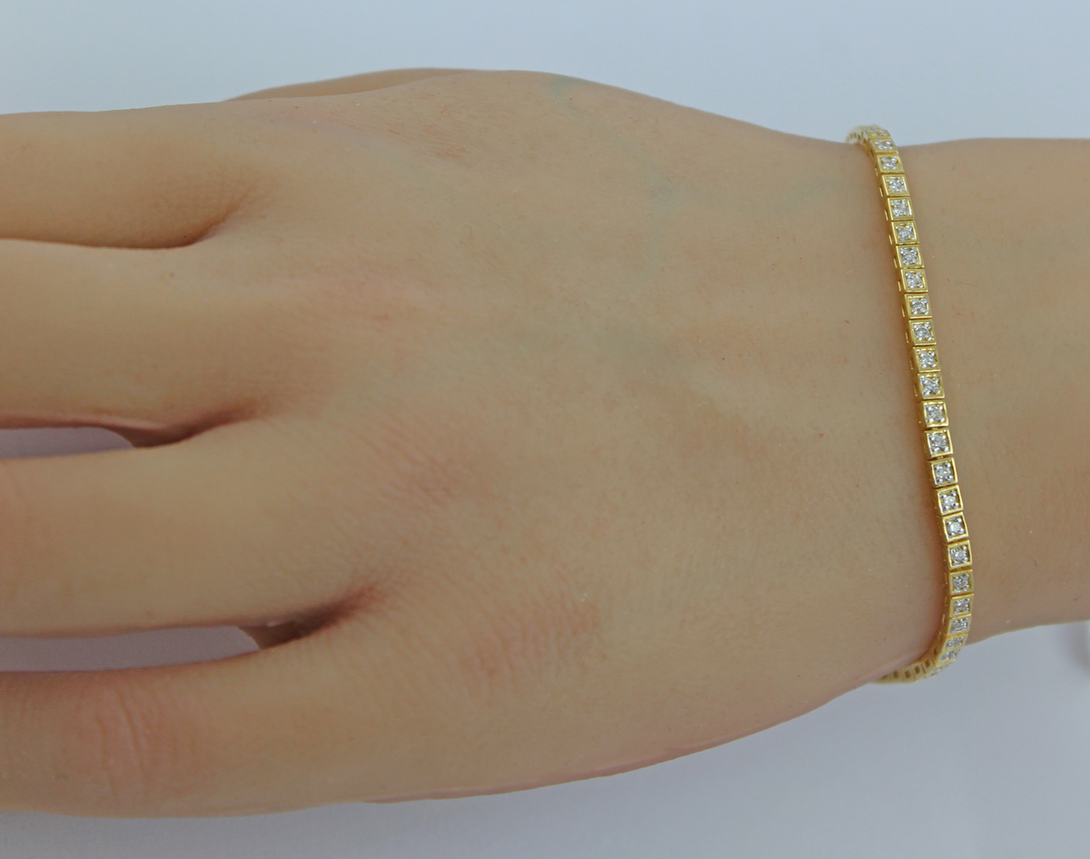 Tennisarmband Silber vergoldet Lab Grown Diamanten 2.0ct. Im quadratischen Design gefertigt, welches alle Blicke auf sich ziehen wird. Breite 2,7mm, Stärke 2,4mm, 18 und 20cm, 6,2 und 6,4 Gramm. Damenarmband Damenschmuck Lab Grown Diamanten. Ein imposanter und zeitloser Klassiker, welcher jedes Frauenherz höher schlagen lässt