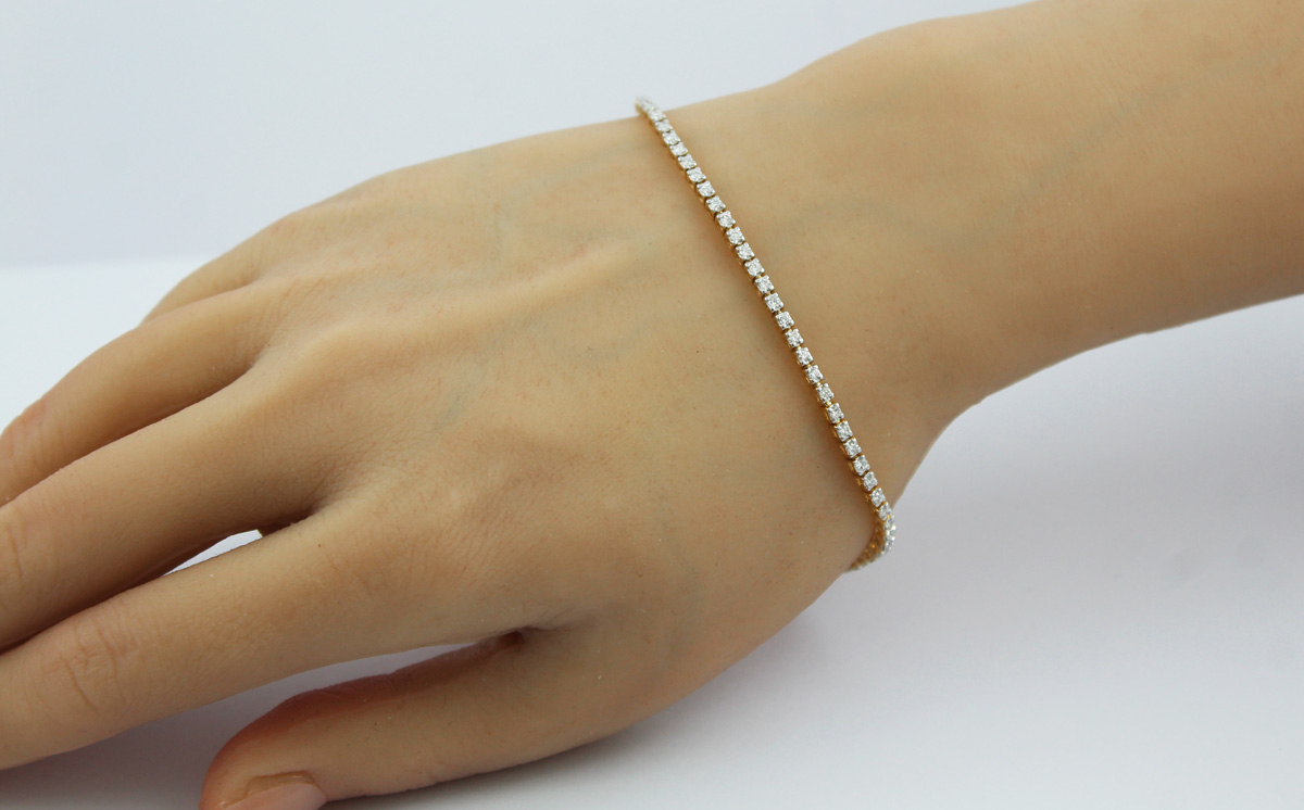 Tennisarmband Gold 333 8 Karat champagnerfarbene Brillanten 1.0ct. Sanfter und zugleich romantischer Stil für jede Frau. Breite 1,9mm, Höhe 2,5mm, 6,12 Gramm. Damenarmband Edelsteinarmband Damenschmuck. Eine exquisite Ergänzung für Ihre Schmucksammlung