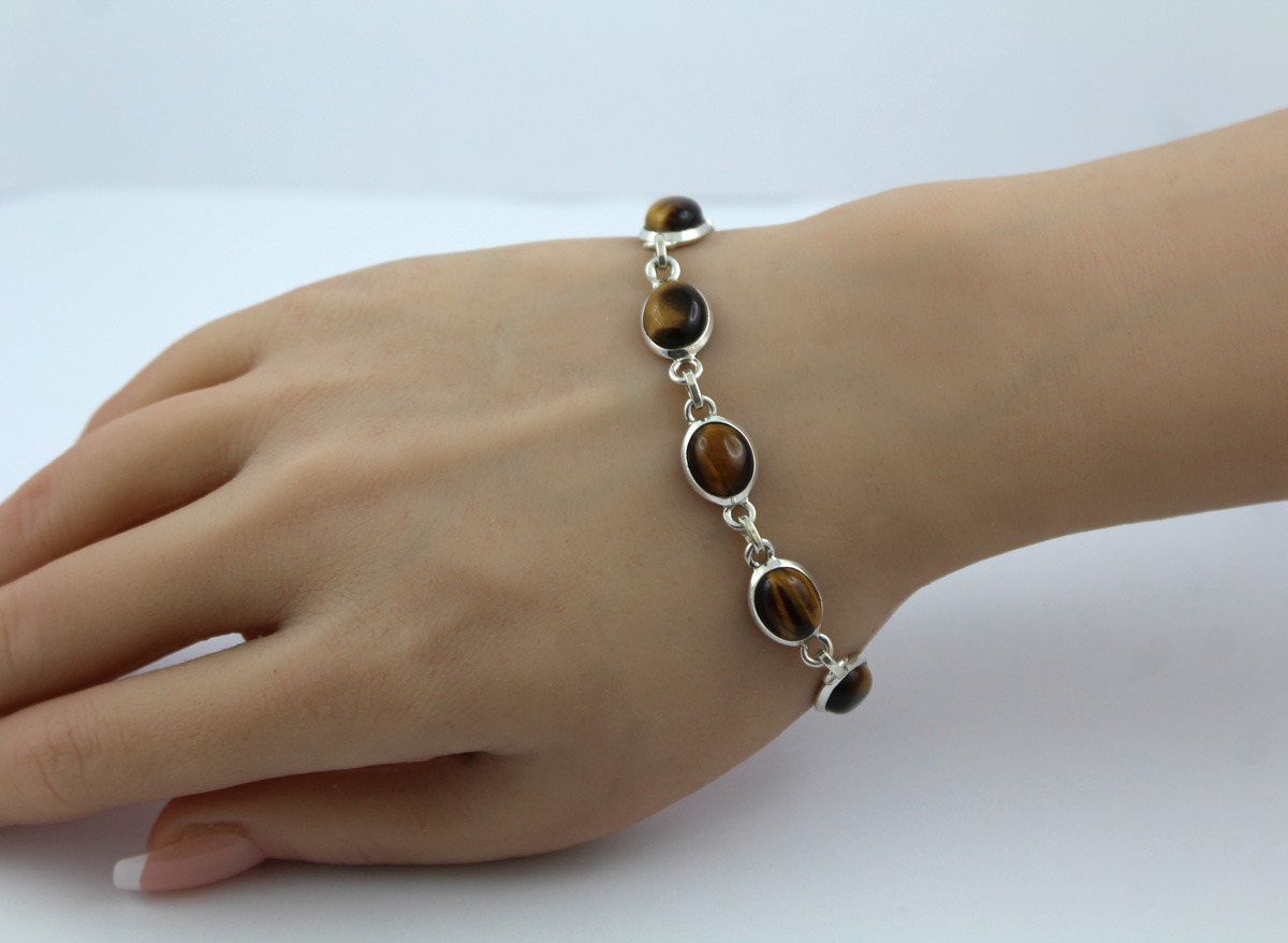 Tigerauge Armband Silber 925 gold braune Edelsteine 25ct 20