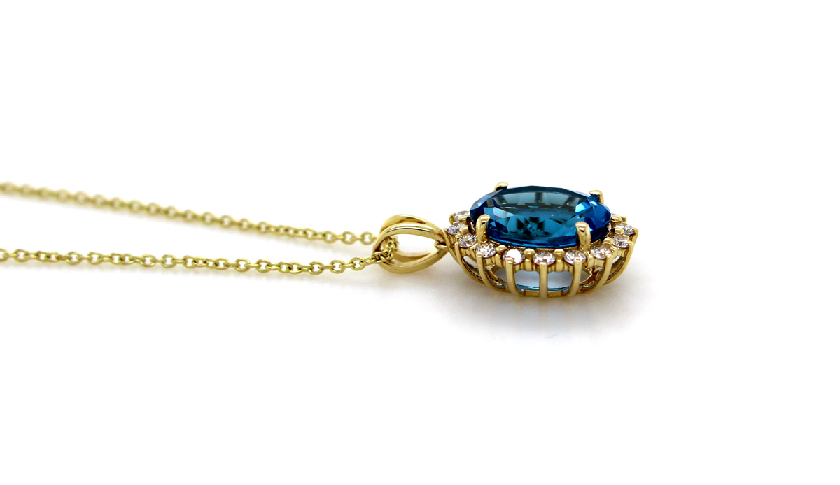 Topas Collier Gold 585 14K blauer Natur Swiss Blautopas Natur Diamanten 45
